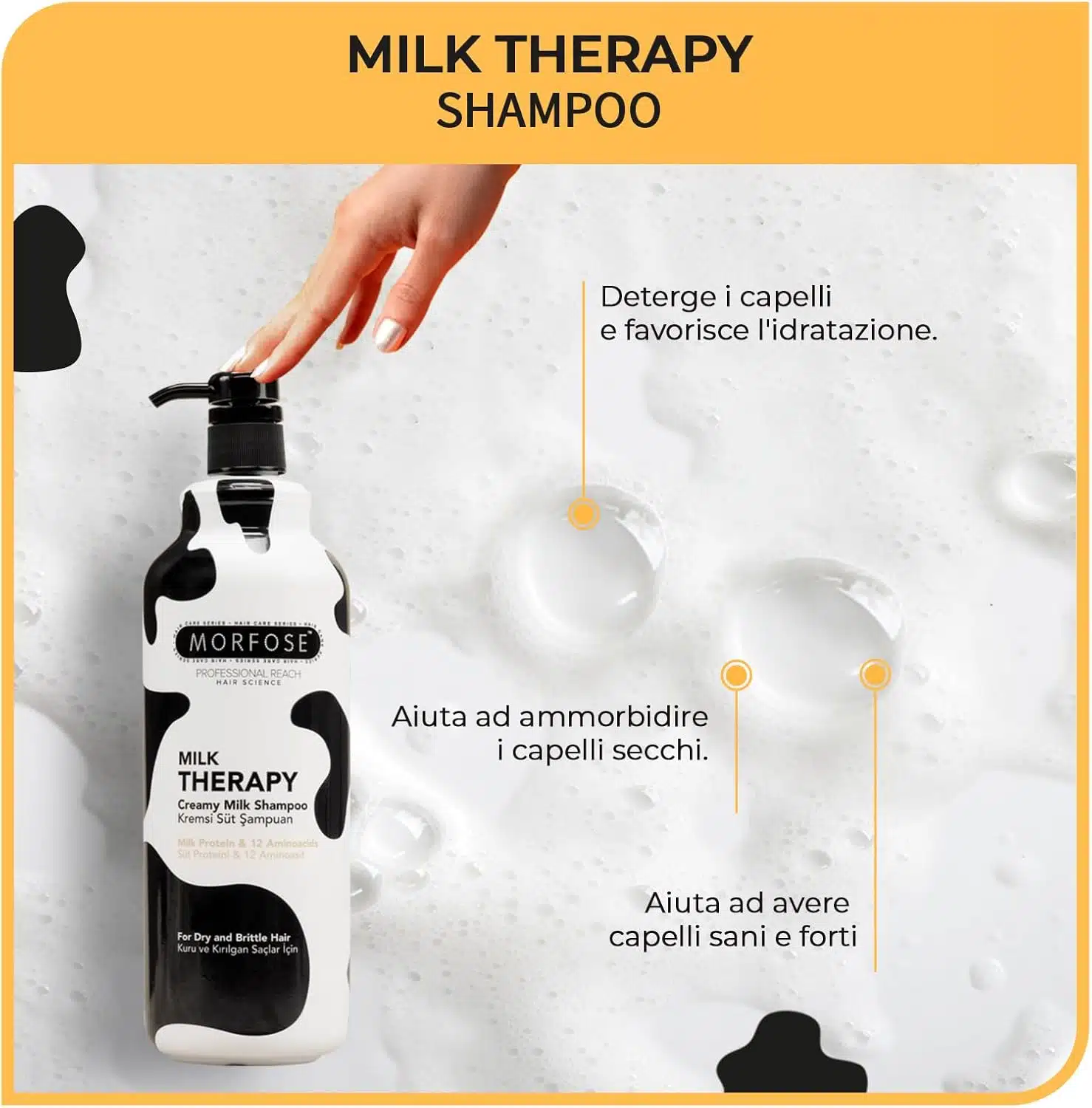 شامپو مو مورفوس مخصوص موهای خشک و موخوره مدل تراپی شیری MORFOSE MILK THERAPY حجم 1000 میلی لیتر