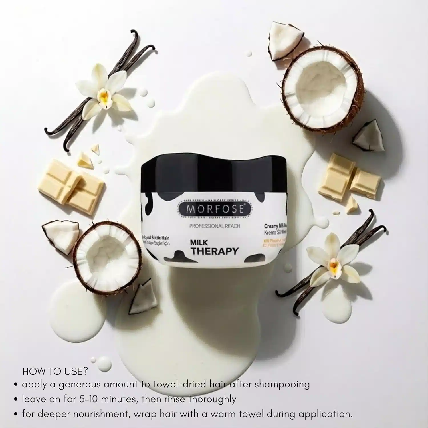 ماسک مو داخل حمام مورفوس مخصوص موهای خشک و موخوره مدل تراپی شیری MORFOSE MILK THERAPY حجم 500 میلی لیتر