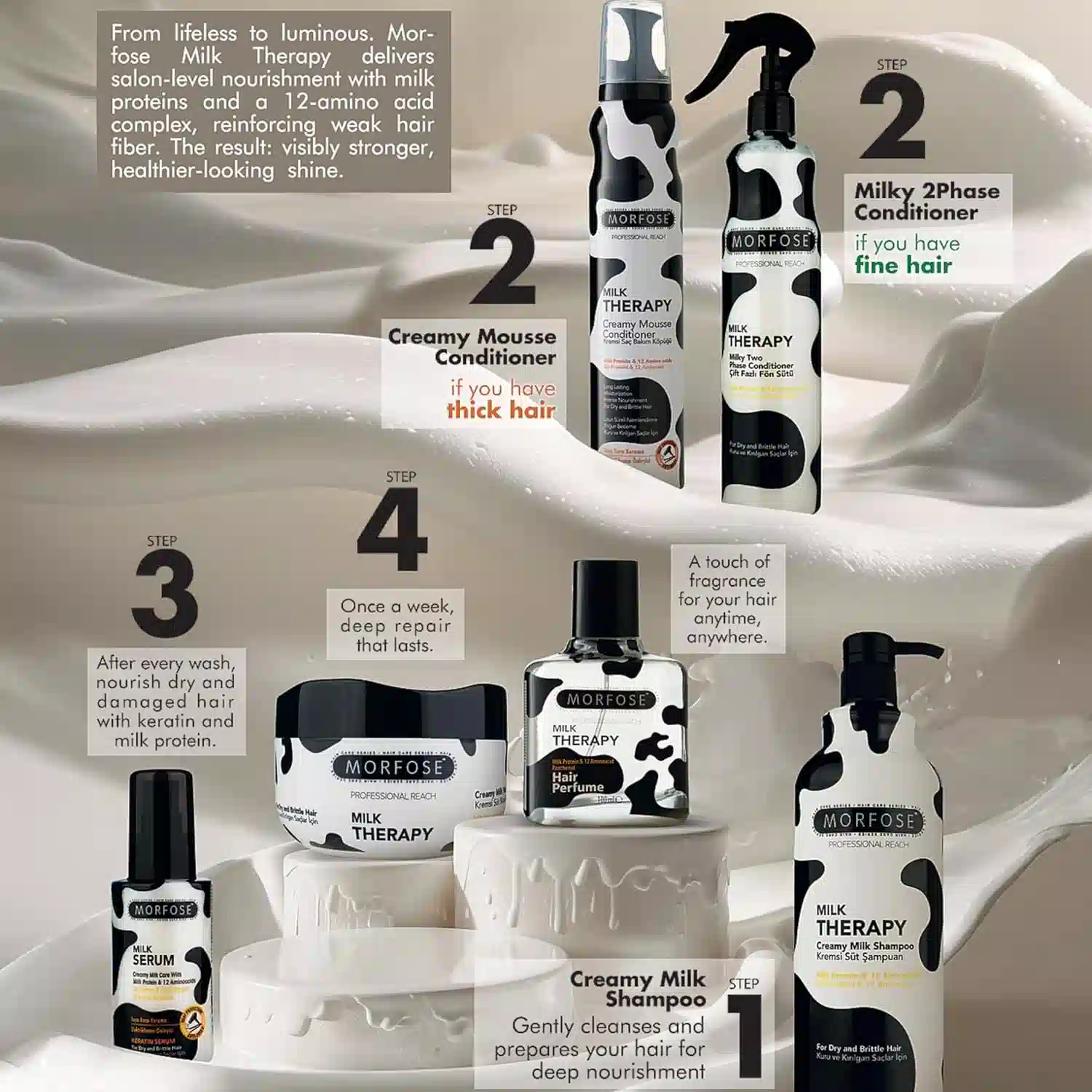 اگر می‌خواهید موهای خشک و آسیب‌دیده دوباره نرم، لطیف و خوش‌حالت شوند، ماسک مورفوس تراپی شیری همراه مطمئن شما خواهد بود، اگر می‌خواهید موخوره‌ها کاهش و تارهای مو استحکام بیشتری پیدا کنند، این ماسک با تغذیه عمقی و رطوبت‌رسانی ویژه، نیاز موهای شما را برطرف می‌کند، اگر می‌خواهید بدون صرف هزینه‌های سنگین سالن‌های زیبایی، تجربه‌ای حرفه‌ای از مراقبت مو در خانه داشته باشید، این محصول بهترین انتخاب است.