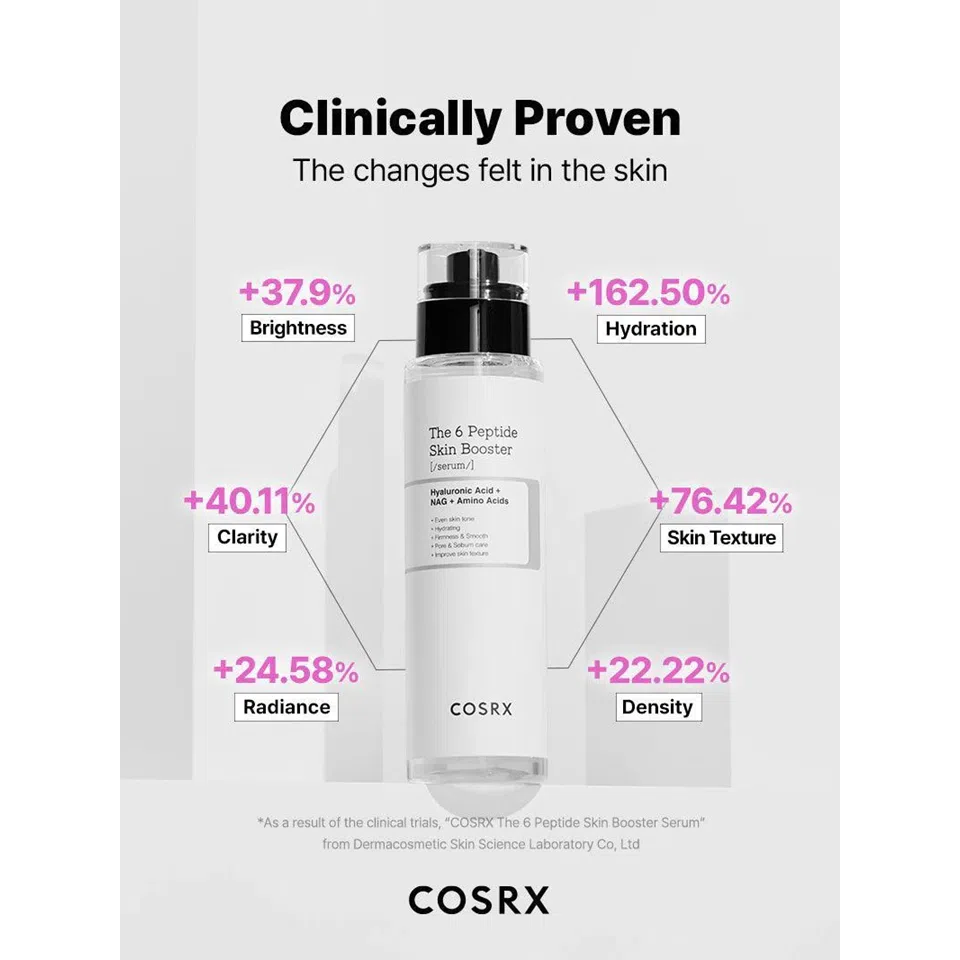 ویژگیهای بوستر سرم تقویت کننده 6 پپتاید کوزارکس Cosrx the 6 peptide skin booster serum حجم 150 میلی لیتر