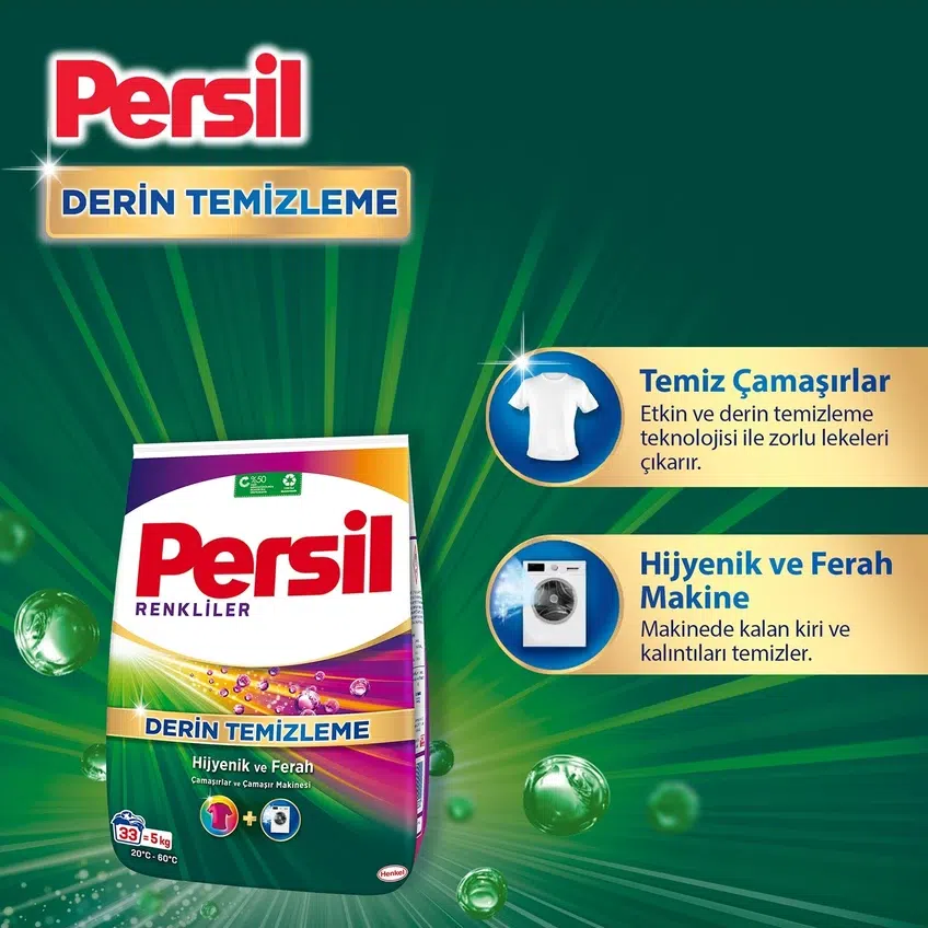 پودر ماشین لباسشویی پرسیل مخصوص لباس های رنگی Persil RENKLİLER DERİN TEMİZLEME وزن 5 کیلو گرم