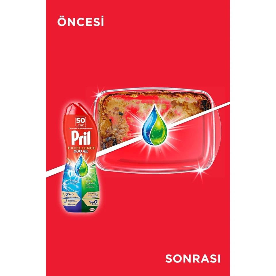 ژل ماشین ظرفشویی پریل مدل چربی زدا Pril Excellence Duo Gel Dishwasher Detergent Degreaser حجم 900 میلی لیتر