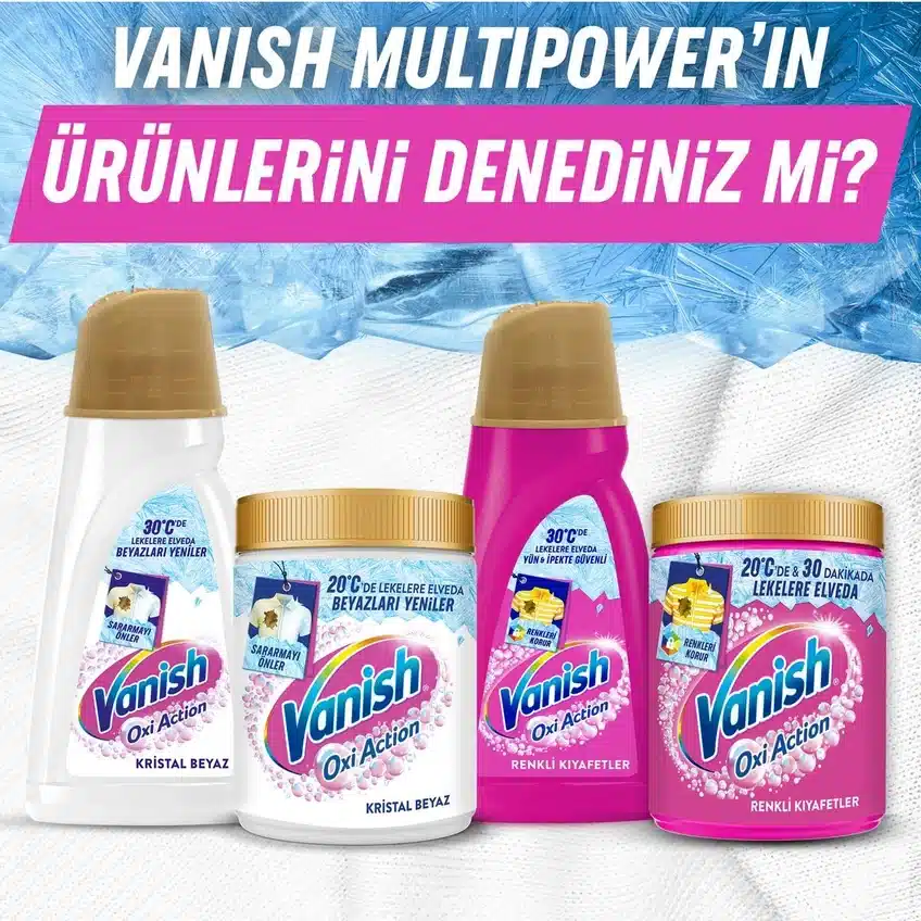 Vanish یکی از شناختهشدهترین برندهای جهانی در زمینه تولید محصولات تخصصی لکهبر و شوینده است. این برند زیرمجموعه شرکت Reckitt Benckiser میباشد و با تکیه بر فناوریهای نوین اکسیژنه، محصولات ایمن و مؤثری برای انواع پارچهها عرضه میکند که تمیزی، طراوت و درخشندگی لباسها را تضمین مینمایند.