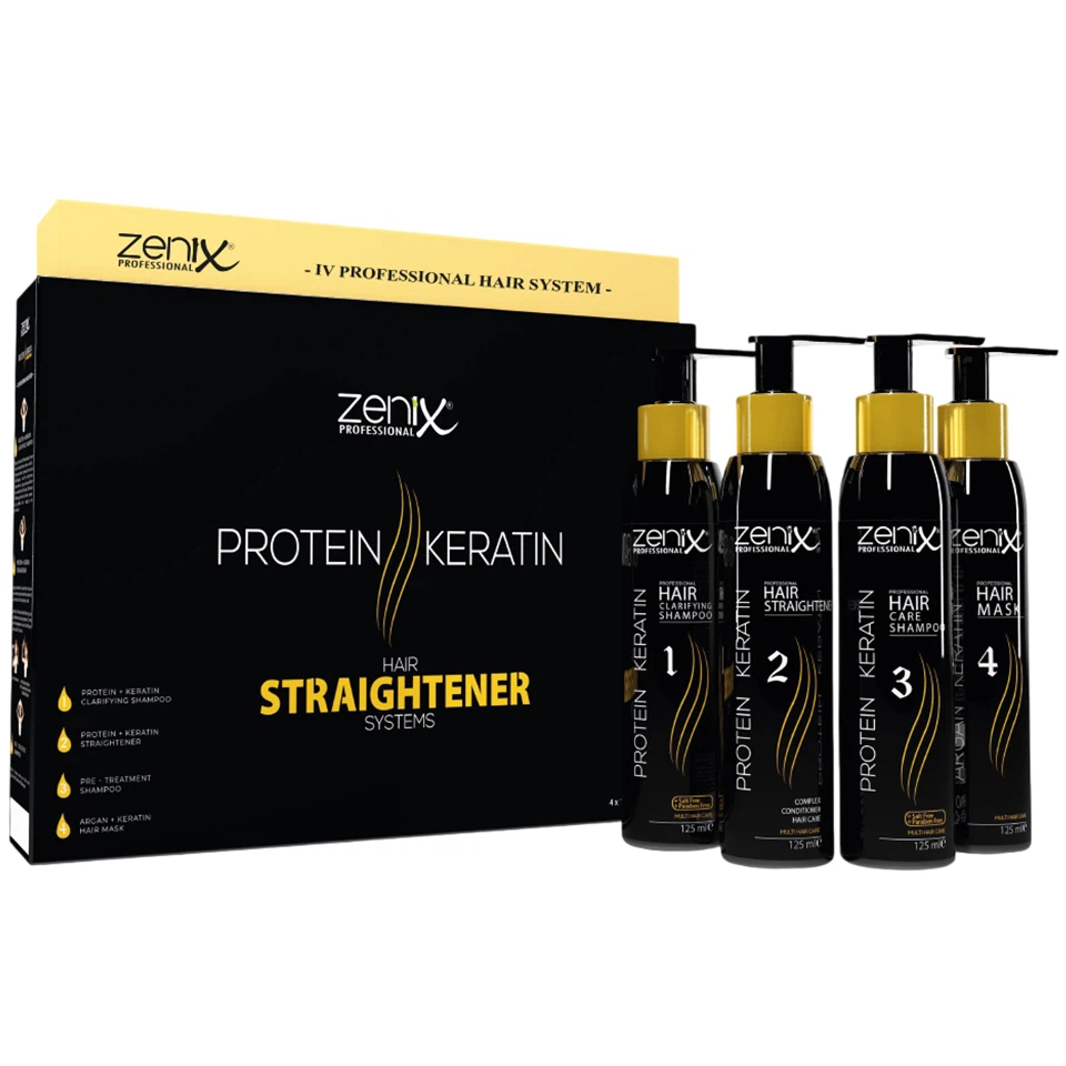 کیت مراقبتی و درمانی کراتین پروتئینه صاف کننده مو زنیکس zenix hair straightener protein keratin treatment care kit حجم 125*4 میلی لیتر